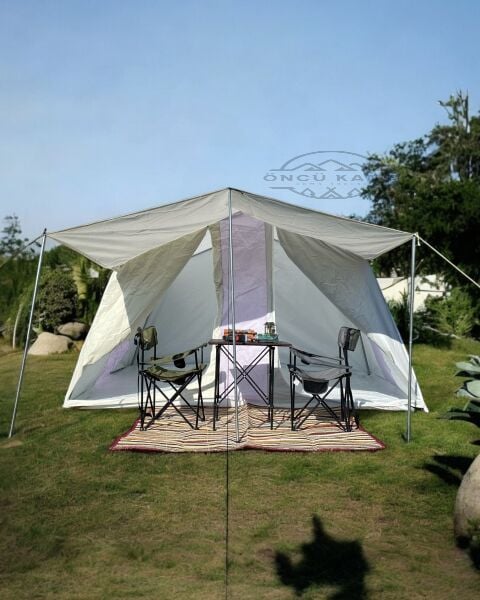 Sağlam yapısı, üstün konfor özellikleri ve sağlıklı pamuklu kumaşıyla bu çadır, kamp ve açık hava etkinlikleriniz için ideal bir yaşam alanı sunar. Gölgeliği ile birlikte toplam 14 m² alan sağlayarak geniş bir kullanım sunar.