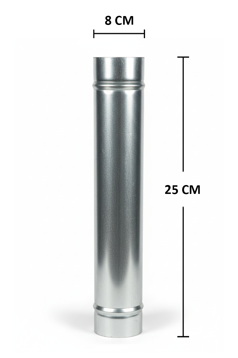 25 cm Düz Soba Borusu, kamp ve çadır sobalarında duman tahliyesini güvenli ve verimli şekilde sağlamak için üretilmiştir. 8 cm (80 mm) çapı, kamp sobalarıyla tam uyumlu ölçüdedir ve sızdırmaz bağlantı imkânı sunar.