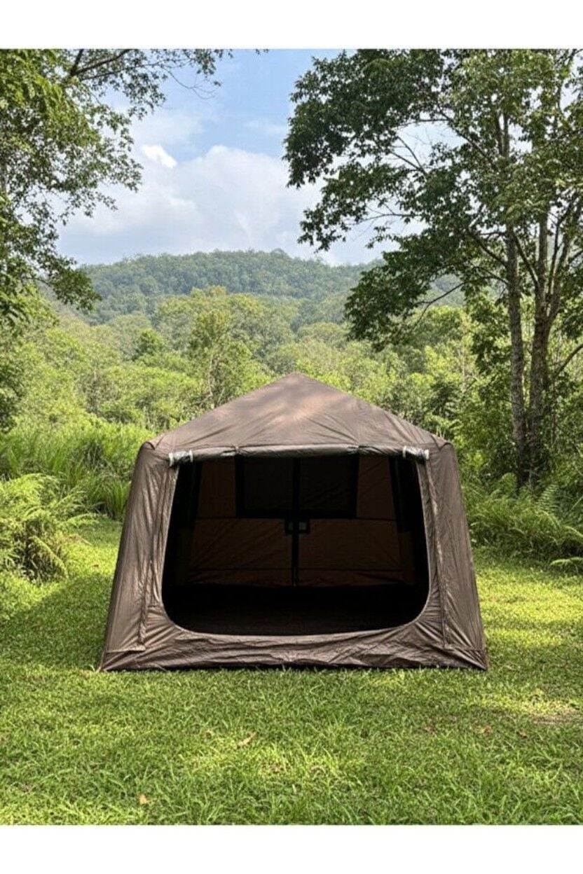 210D Oxford su geçirmez kumaşı; yağmur, rüzgâr ve zorlu hava koşullarına karşı güçlü bir koruma sunar. Çatı kısmında bulunan soba baca çıkışı, kış kampı ve soğuk hava koşullarında soba veya kamp ısıtıcısı kullanımına olanak tanır.