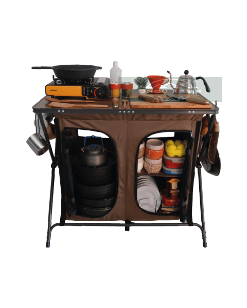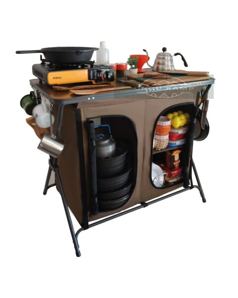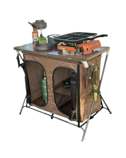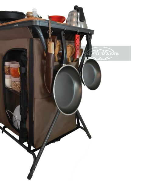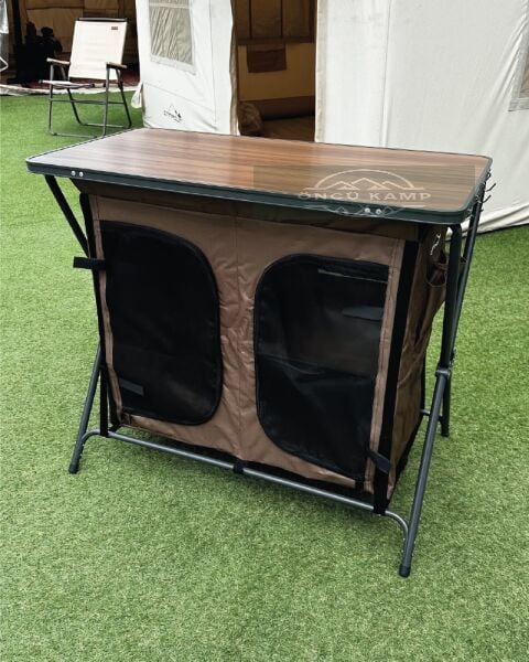 Katlanabilir yapısı sayesinde taşıması kolaydır ve kamp alanında düzenli bir mutfak alanı oluşturur.