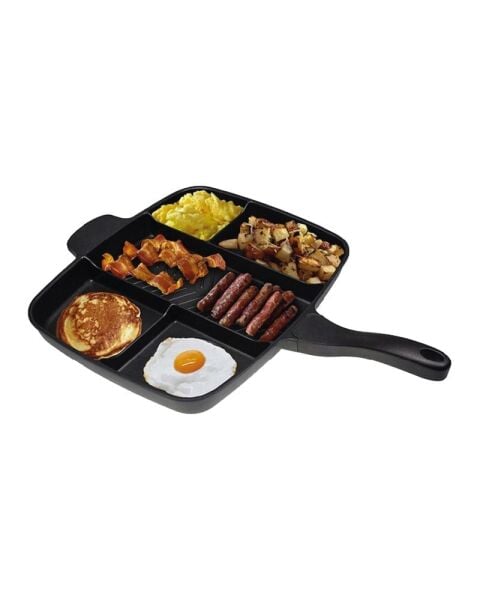 Beş bölmeli tasarım sayesinde aynı anda farklı yemekler pişirilebilir.