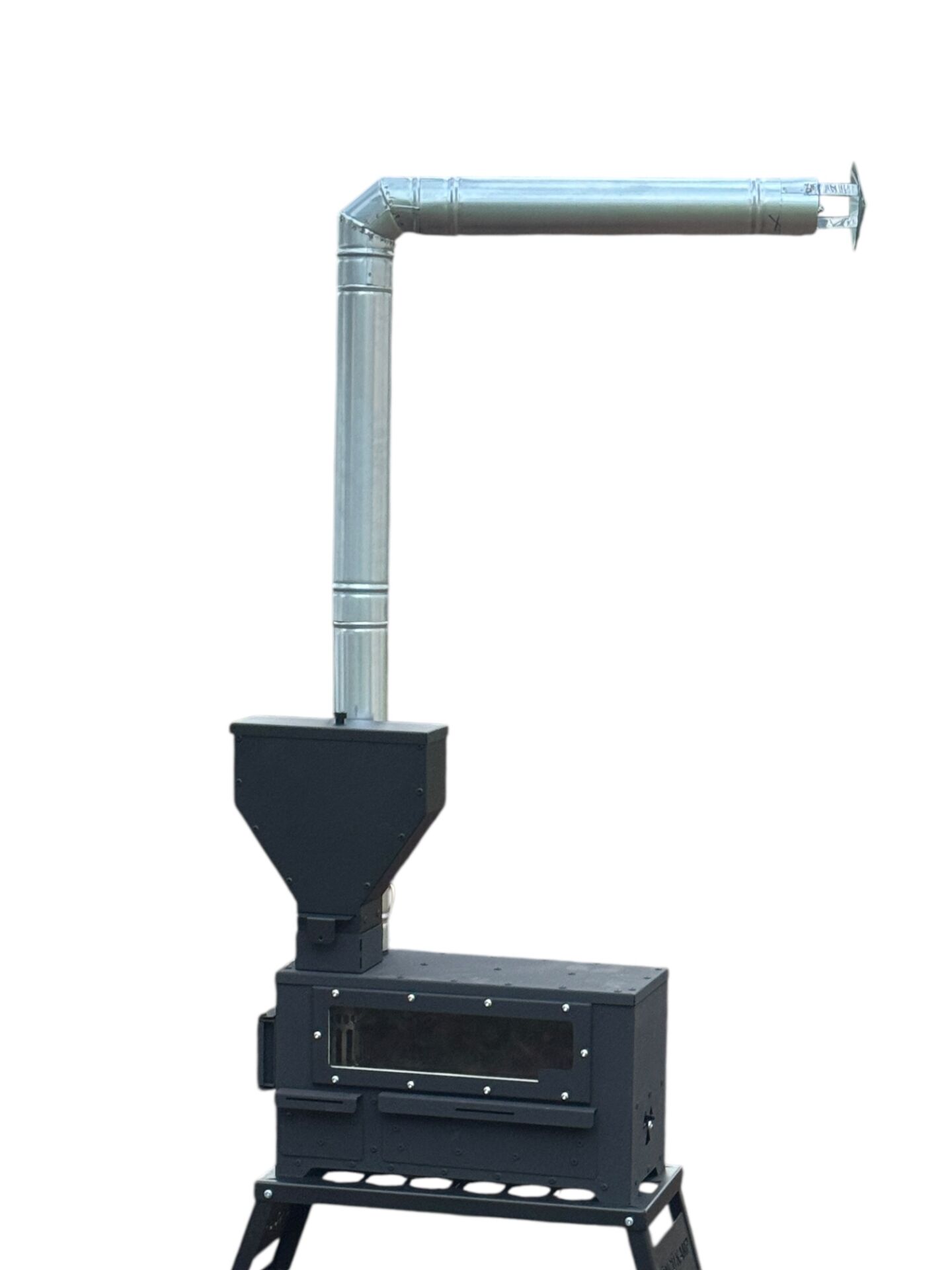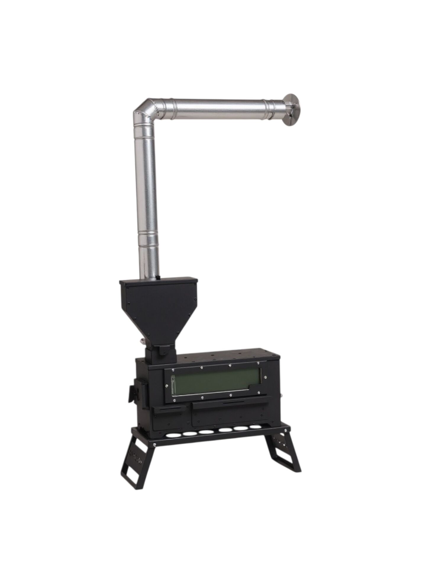 Pelet Yakıtlı Kamp Sobası | Seramik Camlı | Taşınabilir & Yüksek Verimli