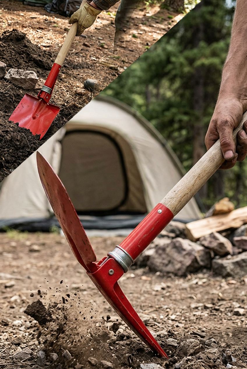 Katlanabilir kamp küreği ve kazma, doğada ihtiyaç duyabileceğiniz temel kazı ve düzenleme işlerini tek bir ekipmanla çözmenizi sağlar. Kamp alanı hazırlarken, ateş çukuru açarken veya zemin düzeltirken pratik bir yardımcıdır.