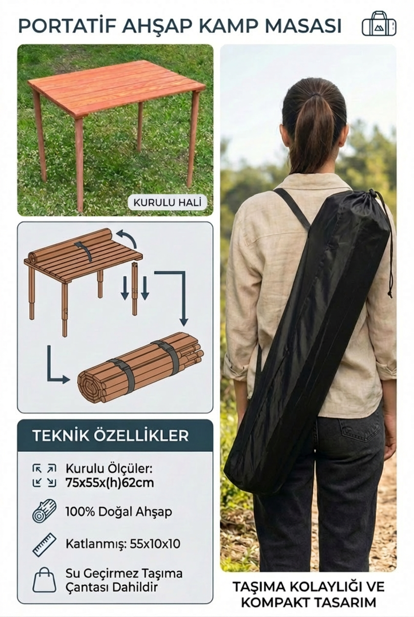 - 1 adet katlanır ahşap kamp masası